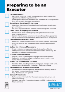 Your loved one has entrusted you with winding up their earthly affairs. This fiduciary duty requires you to act with good faith and honesty on their behalf. The size and complexity of the estate can make your job as an executor easy or very challenging. Taking the steps outlined above while the testator is still alive can make your job less stressful.